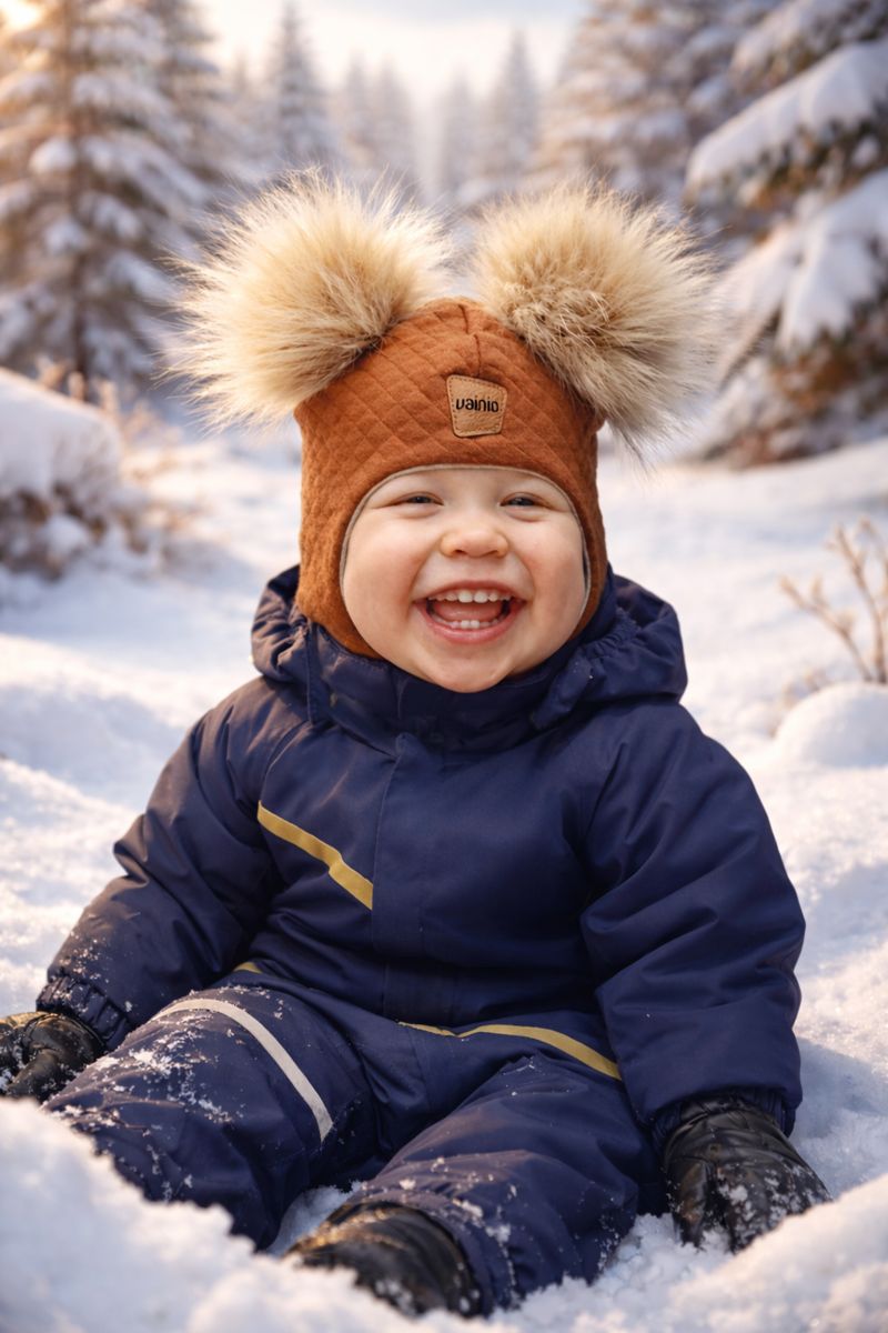Vainion kypärämyssykät ovat valmistettu kotimaisena käsityönä, luonnollisesti. Sisäpuolella on Suomessa valmistettua, mulesing-vapaata merinovillaa, joka ei kutita ja tuntuu mukavalta pieniä poskia vasten. Myssykän "liepeet" ovat suunniteltu riittävän pitkiksi suojaamaan myös lapsen niskaa ja kaulaa.